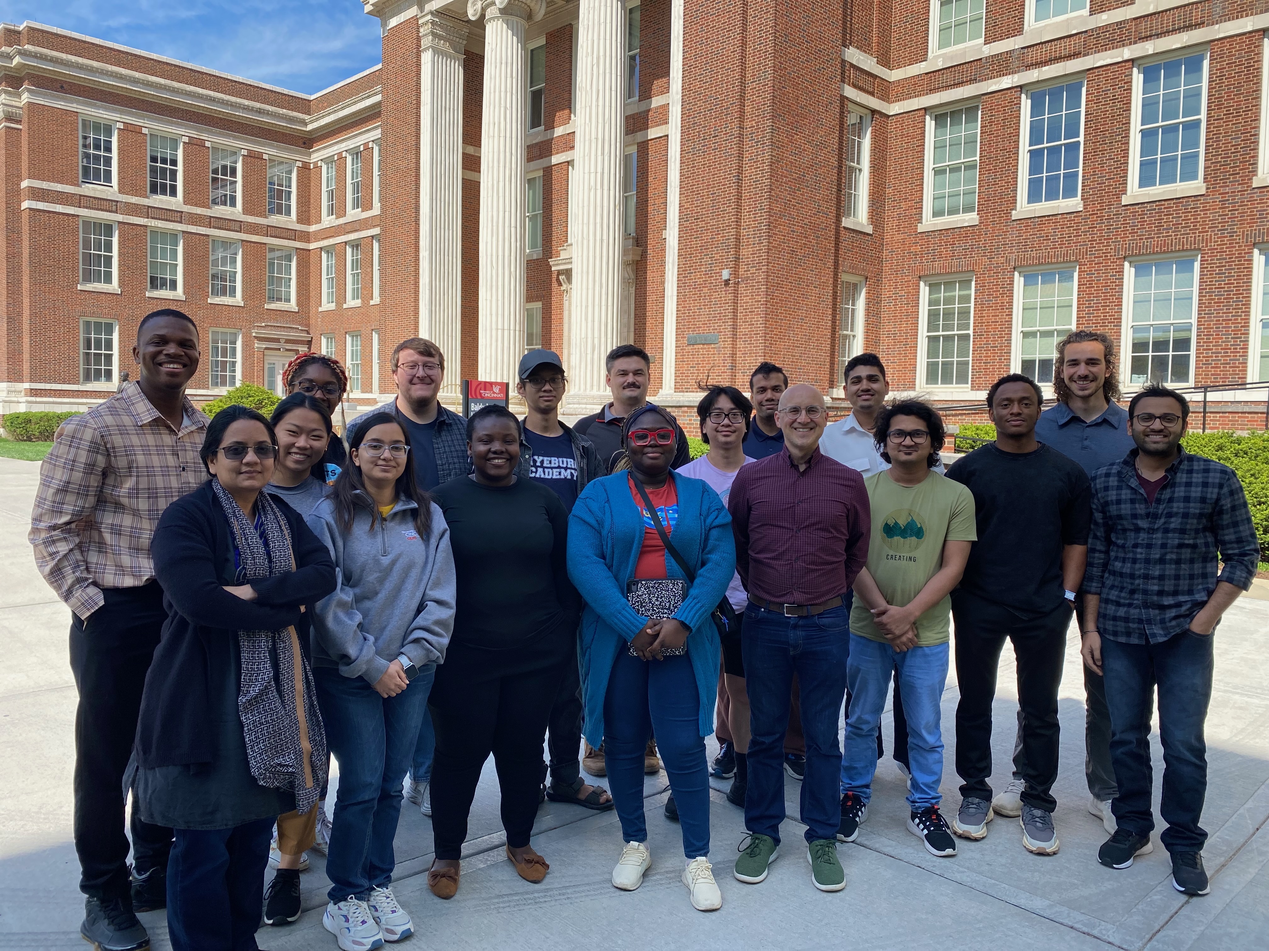Friday, August 02, 2024 – Left to right: Zoey Jestude, Gabe Carson, Ravi Kumar, Meiyan Timberlake, Josh Maile, Likun Sun, Nate Merrow, Philip Ochieze, Yuval Noiman, Ian Giblin, Eric Payton. Gabe Carson and Nate Merrow worked in other research groups as part of the NSF REALIZE REU.